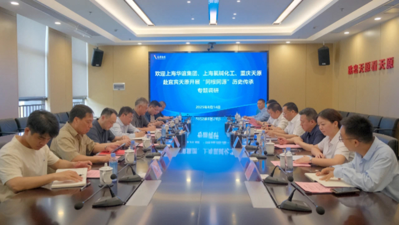 8月14日,中國(guó)化工政研會(huì)副秘書(shū)長(zhǎng)、思政專家委員會(huì)成員,上海華誼集團(tuán)股份有限公司黨委宣傳部部長(zhǎng)、黨校常務(wù)副校長(zhǎng)廖達(dá)海,上海氯堿化工股份有限公司黨委副書(shū)記、紀(jì)委書(shū)記、工會(huì)主席周建峰,重慶天原化工有限公司黨委副書(shū)記、副總經(jīng)理、工會(huì)主席周勇等一行,赴宜賓天原集團(tuán)開(kāi)展“同根同源”歷史傳承專題調(diào)研。宜賓天原集團(tuán)黨委委員、工會(huì)主席王明安,董事會(huì)秘書(shū)何波參與調(diào)研座談。